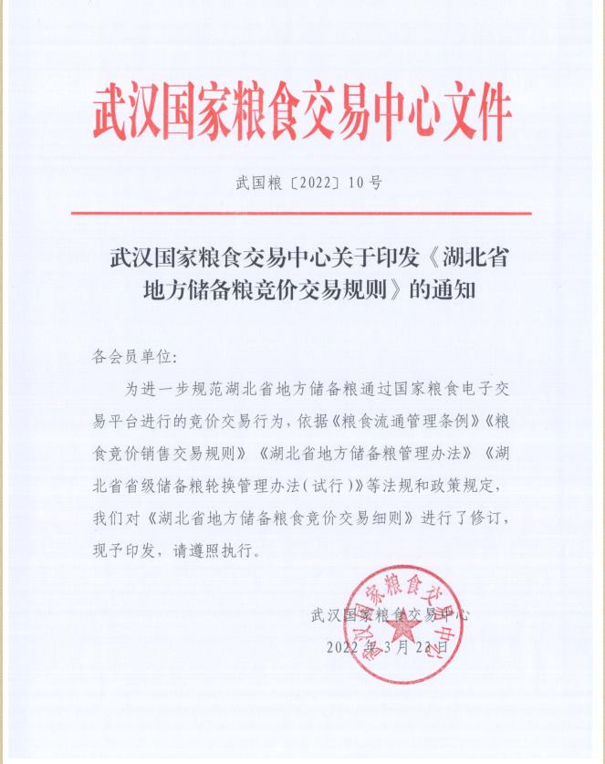湖北粮网关于印发《湖北省地方储备粮竞价交易规则》的通知